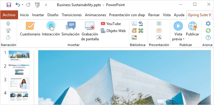 iSpring Suite es una herramienta sencilla que te permitirá crear cursos fácilmente. Si alguna vez has creado una presentación de PowerPoint, entonces te será muy fácil usar iSpring Suite. Podrás crear tu primer curso sin formación previa.
